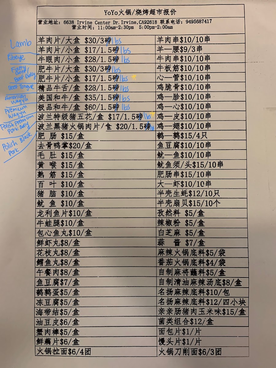 The menu is suitable for casual dining and sharing, allowing guests to select individual portions for cooking in the hot pot or enjoying grilled and stir-fried dishes. It supports both dine-in and delivery services, accommodating quick orders or leisurely meals focused on variety and communal dining.